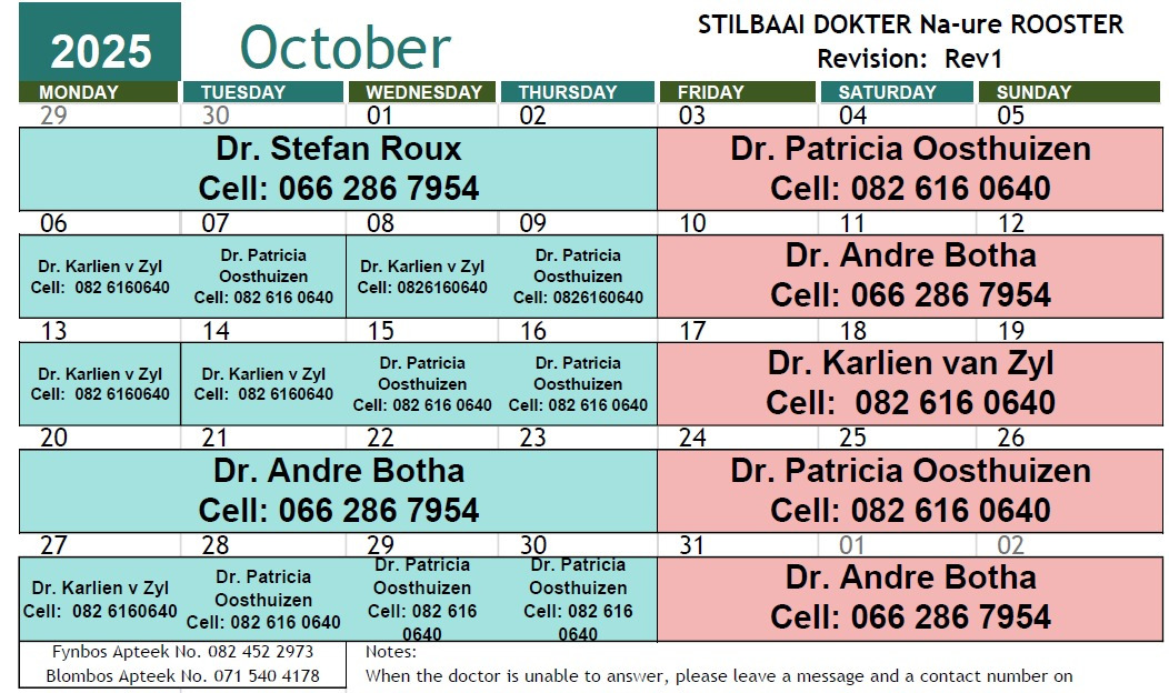 Stilbaai Doctor After Hours Roster